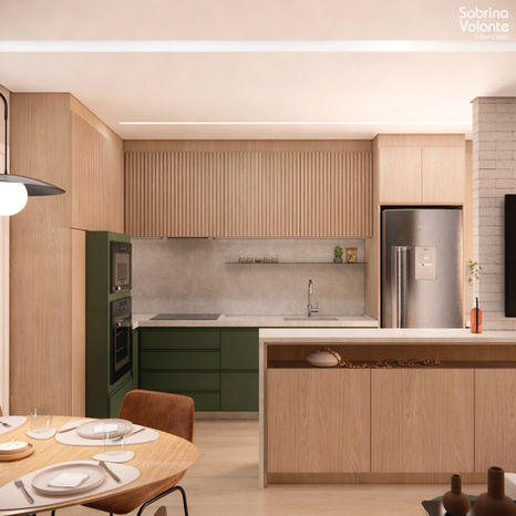 A integração da sacada trouxe uma sensação de amplitude, proporcionando um espaço ideal para relaxar e socializar. Com a churrasqueira e o balcão, os momentos de lazer se tornam ainda mais especiais. A iluminação diferenciada na área social garante conforto e destaque aos ambientes, complementando o estilo moderno e jovem que buscamos transmitir.